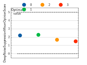 >>> # Example plotting a single value >>> import torch >>> from torchmetrics.audio import DeepNoiseSuppressionMeanOpinionScore >>> metric = DeepNoiseSuppressionMeanOpinionScore(8000, False) >>> metric.update(torch.rand(8000)) >>> fig_, ax_ = metric.plot()