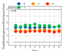 >>> # Example plotting multiple values >>> import torch >>> from torchmetrics.audio import DeepNoiseSuppressionMeanOpinionScore >>> metric = DeepNoiseSuppressionMeanOpinionScore(8000, False) >>> values = [ ] >>> for _ in range(10): ... values.append(metric(torch.rand(8000))) >>> fig_, ax_ = metric.plot(values)