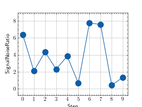>>> # Example plotting multiple values >>> import torch >>> from torchmetrics.audio import SignalNoiseRatio >>> metric = SignalNoiseRatio() >>> values = [ ] >>> for _ in range(10): ... values.append(metric(torch.rand(4), torch.rand(4))) >>> fig_, ax_ = metric.plot(values)