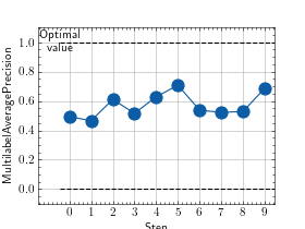 >>> # Example plotting multiple values >>> import torch >>> from torchmetrics.classification import MultilabelAveragePrecision >>> metric = MultilabelAveragePrecision(num_labels=3) >>> values = [ ] >>> for _ in range(10): ... values.append(metric(torch.rand(20,3), torch.randint(2, (20,3)))) >>> fig_, ax_ = metric.plot(values)