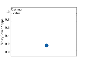 taskargument to either'binary'or'multiclass'. See the documentation ofbinary_cohen_kappa()andmulticlass_cohen_kappa()for the specific details of each argument influence and examples.- Legacy Example: