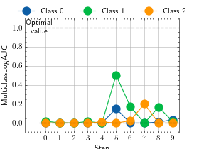 >>> # Example plotting multiple values >>> import torch >>> from torchmetrics.classification import MulticlassLogAUC >>> metric = MulticlassLogAUC(num_classes=3) >>> values = [ ] >>> for _ in range(10): ... values.append(metric(torch.randn(20, 3), torch.randint(3, (20,)))) >>> fig_, ax_ = metric.plot(values)