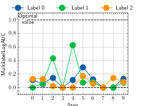 >>> # Example plotting multiple values >>> import torch >>> from torchmetrics.classification import MultilabelLogAUC >>> metric = MultilabelLogAUC(num_labels=3) >>> values = [ ] >>> for _ in range(10): ... values.append(metric(torch.rand(20,3), torch.randint(2, (20,3)))) >>> fig_, ax_ = metric.plot(values)