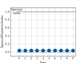 >>> # Example plotting multiple values >>> from torch import rand >>> from torchmetrics.image import SpectralDistortionIndex >>> preds = rand([16, 3, 16, 16]) >>> target = rand([16, 3, 16, 16]) >>> metric = SpectralDistortionIndex() >>> values = [ ] >>> for _ in range(10): ... values.append(metric(preds, target)) >>> fig_, ax_ = metric.plot(values)