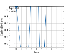 >>> from torch import randn >>> # Example plotting multiple values >>> from torchmetrics.regression import CosineSimilarity >>> metric = CosineSimilarity() >>> values = [] >>> for _ in range(10): ... values.append(metric(randn(10,2), randn(10,2))) >>> fig, ax = metric.plot(values)
